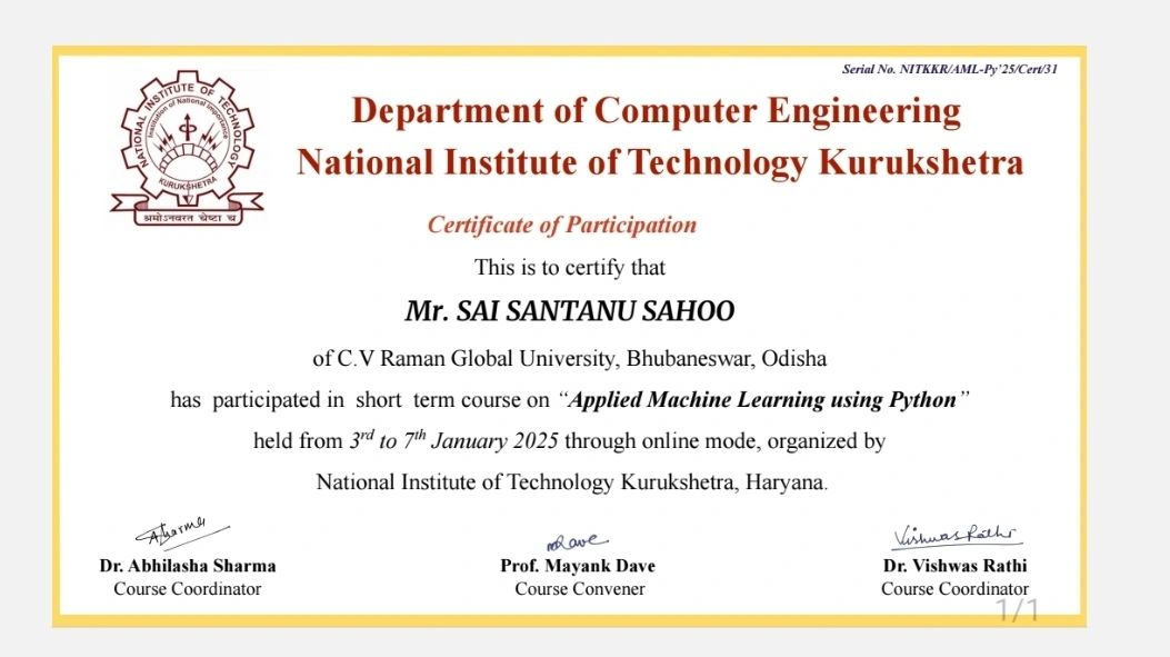 B.Tech in Computer Science (2023 - 2027) β CGPA: 7.9 - ITAMATI HIGHER SECONDARY SCHOOL OF EDUCATION & TECHNOLOGY ITAMATI